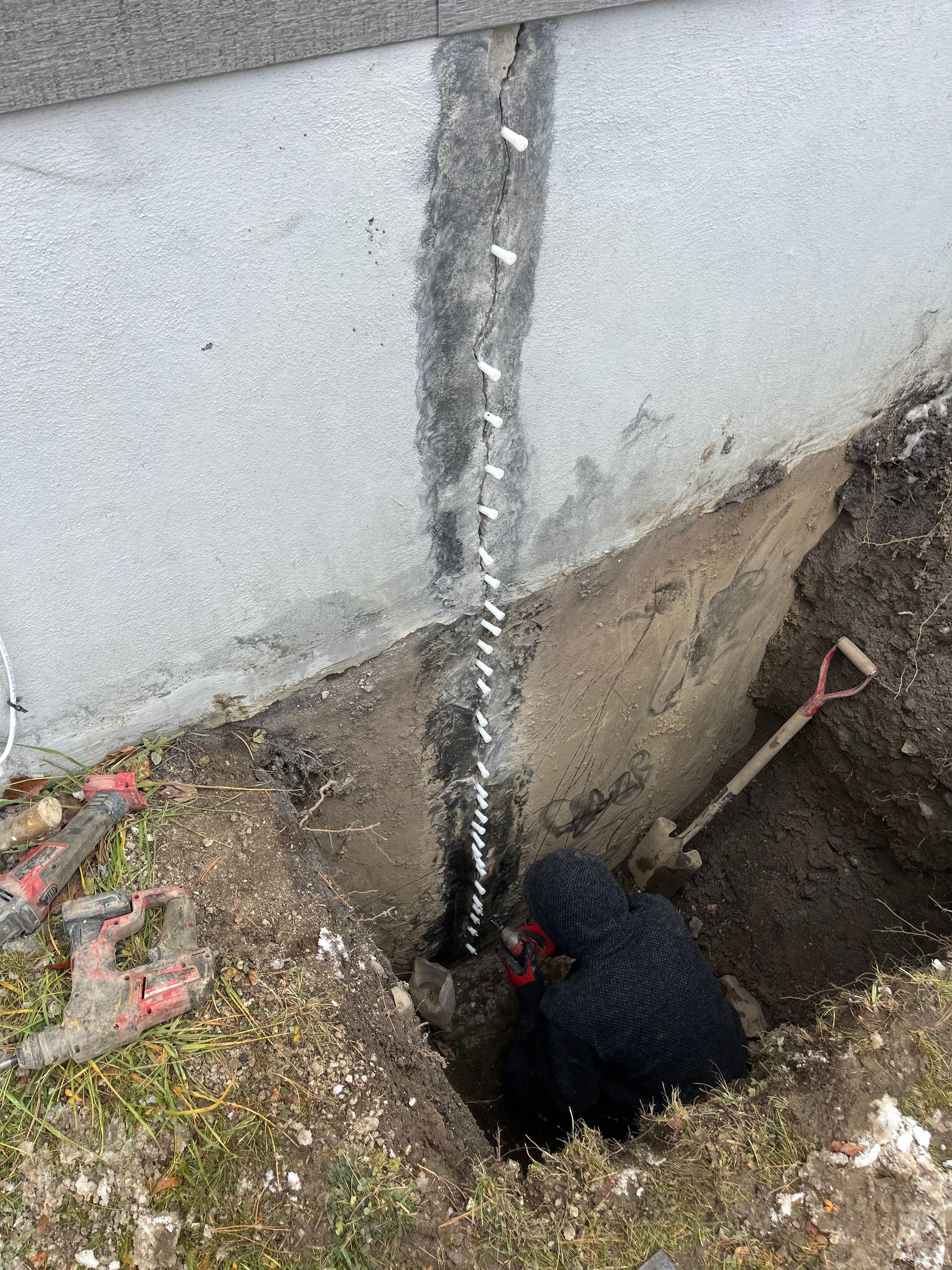 Pour les fissures structurelles ou récurrentes, accès direct à la fondation pour colmatage et imperméabilisation